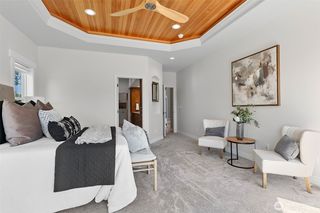 Designed for modern living and seamless work-life harmony, this spacious custom home features two private offices, ideal for remote work or creative pursuits. With five bedrooms, each with its own bathroom and expansive closet space, everyone enjoys their own private haven. The open-concept living space invites connection and entertaining featuring a gourmet kitchen, casual dining area, and elegant formal dining room, all enhanced by exquisite custom woodwork and thoughtful design. A stylish mudroom with abundant cubbies keeps your day organized from the moment you walk in. Outside, a near acre of manicured lawn includes a premium swing set under shade of Norwegian Maple trees, yielding to picturesque orchards and alfalfa views beyond.