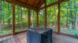 Why build new? This picture-perfect 10-year-old home sits on almost 3 acres of wooded privacy for you to spread out and enjoy. An attractive 3-bedroom, 2-bath ranch featuring a cathedral ceiling in the main living space, floor-to-ceiling stone fireplace with raised hearth, laminate plank flooring, custom built-ins, and windows on every side to take in the views. The tiled kitchen and baths, farmhouse sink, stainless appliances, and butcher block counters complement the serene, country setting. The spacious main bedroom offers a huge walk-in closet and sliders leading to the rear deck. Relax and listen to the sounds of nature in your own screened-in veranda, complete with lighting and a knotty pine ceiling. The home includes both a basement and a crawl space for extra storage, plus a unique outbuilding with a carport overhang--perfect for hobbies, storage, or whatever you'd like. Sugar maples, paw paw, black walnut, white ask, and hickory are just some types of trees this property has. Walk the trails, ride your 4-wheelers, plant a garden in the back field, or simply enjoy the peace and privacy of country living. Home is located in the New Prairie school district, and this one won't last long!